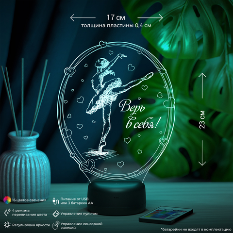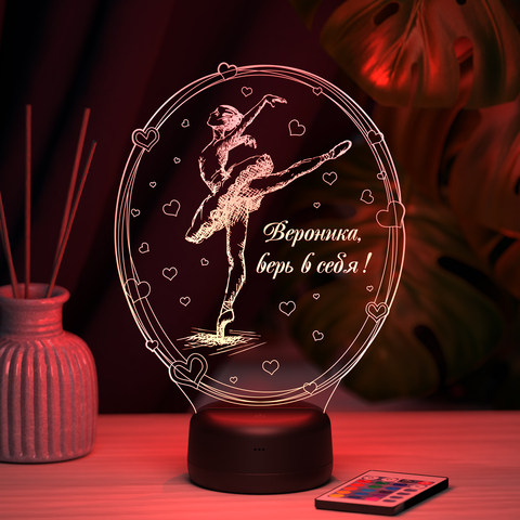 3Д-светильник "Балерина -верь в себя" (Ваш текст)
