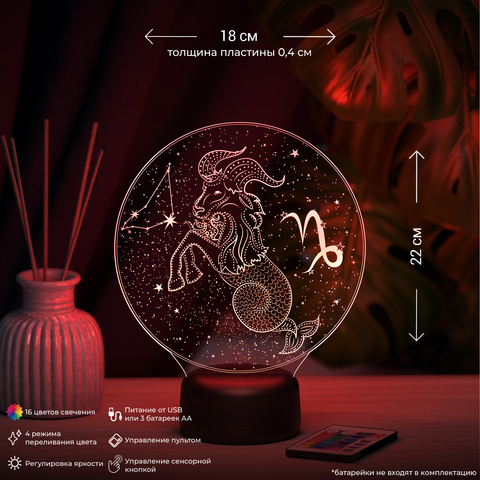 Питание: 3Д-Светильник работает от 3-х батареек АА или от USB провода. Возможна доукомплектация адаптером питания от сети 220V