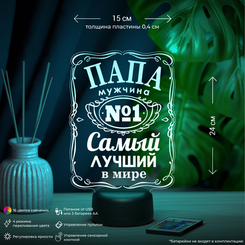 Ночник "Папа / отец - Мужчина #1" (Ваш текст)