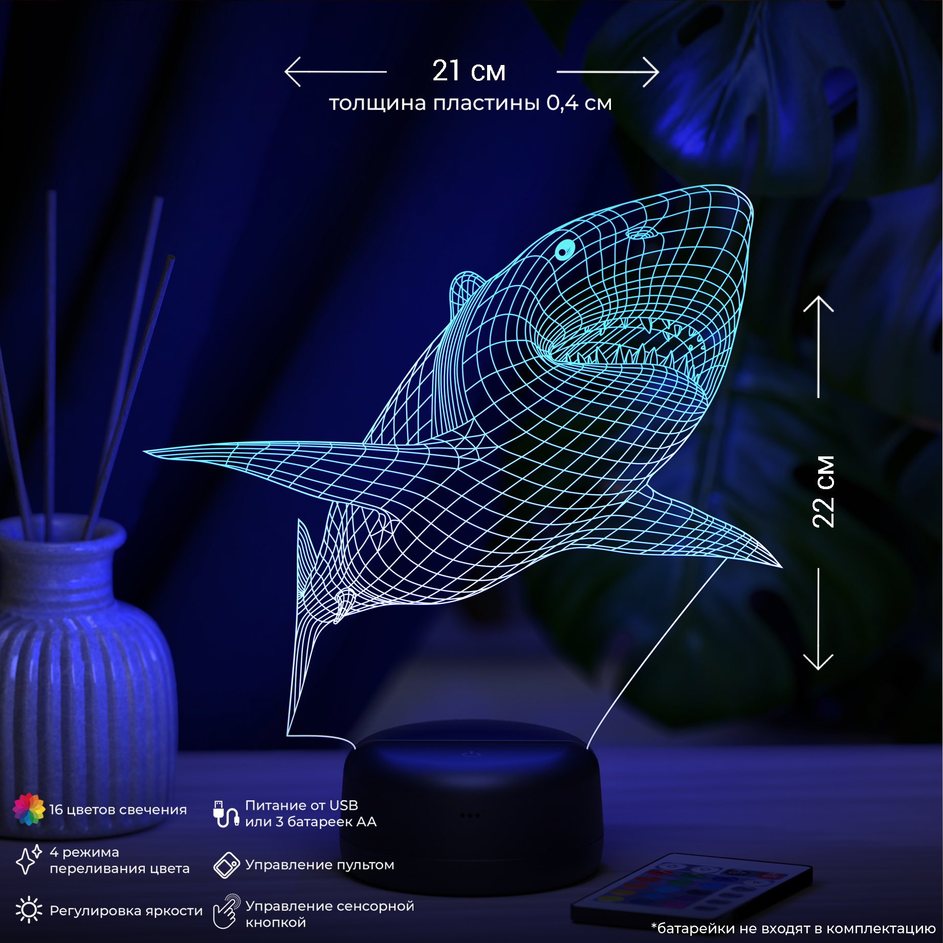 Питание: 3Д-Светильник работает от 3-х батареек АА или от USB провода. Возможна доукомплектация адаптером питания от сети 220V