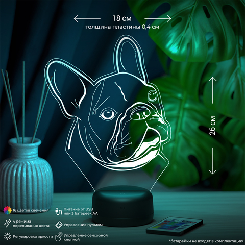 Питание: 3Д-Светильник работает от 3-х батареек АА или от USB провода. Возможна доукомплектация адаптером питания от сети 220V