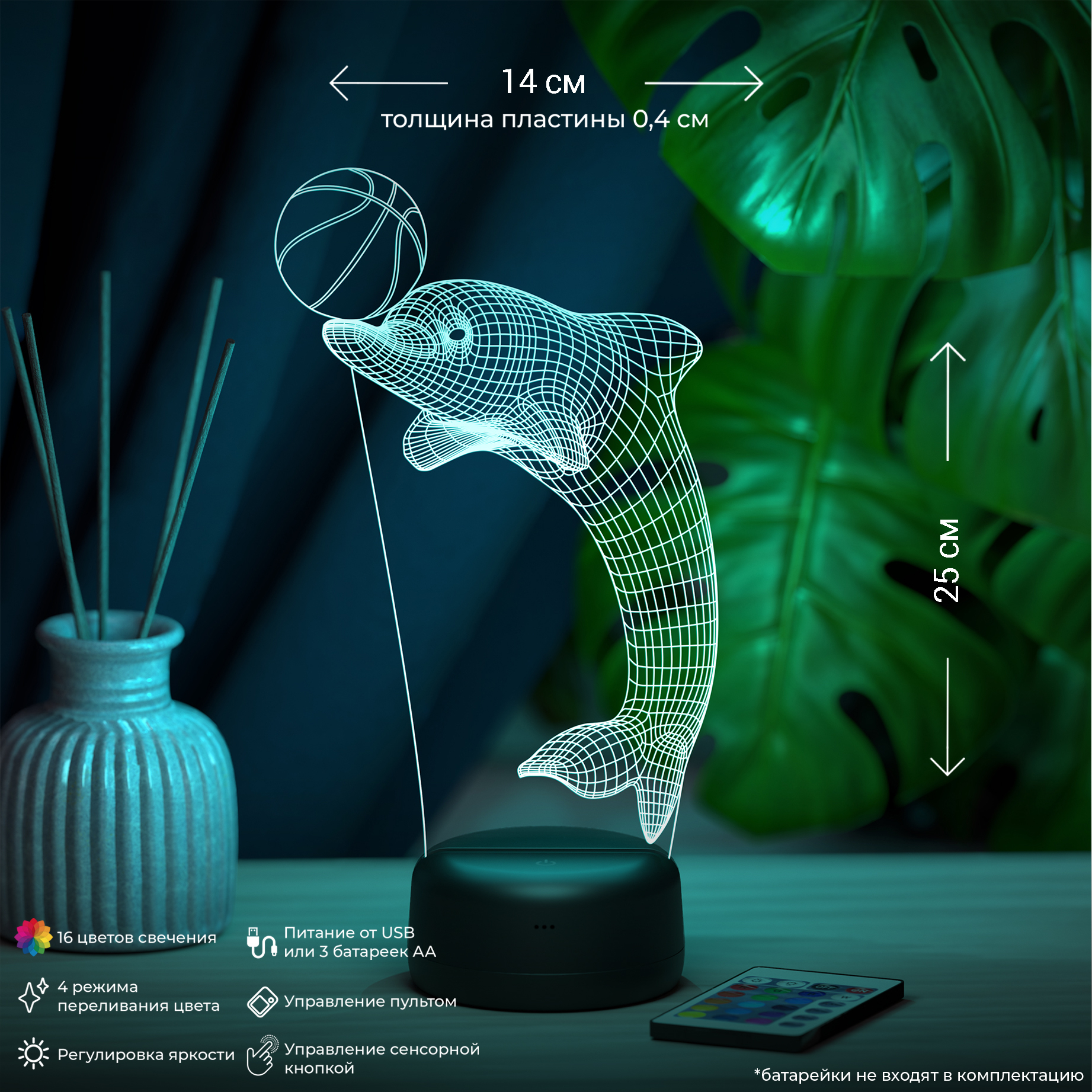 Питание: 3Д-Светильник работает от 3-х батареек АА или от USB провода. Возможна доукомплектация адаптером питания от сети 220V