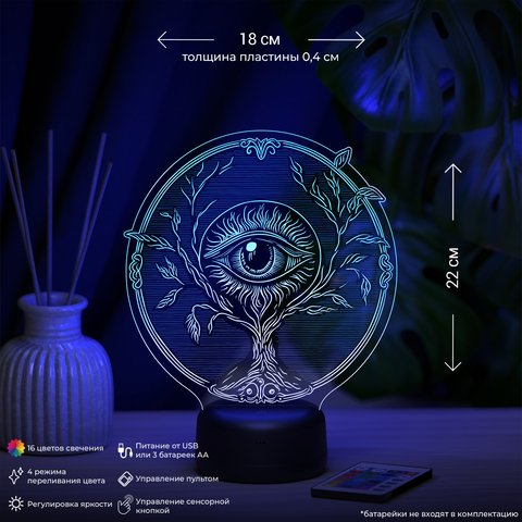 Питание: 3Д-Светильник работает от 3-х батареек АА или от USB провода. Возможна доукомплектация адаптером питания от сети 220V