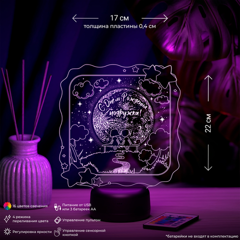 Ночник "Две подруги - С днём рождения, подружка !" (Ваш текст)