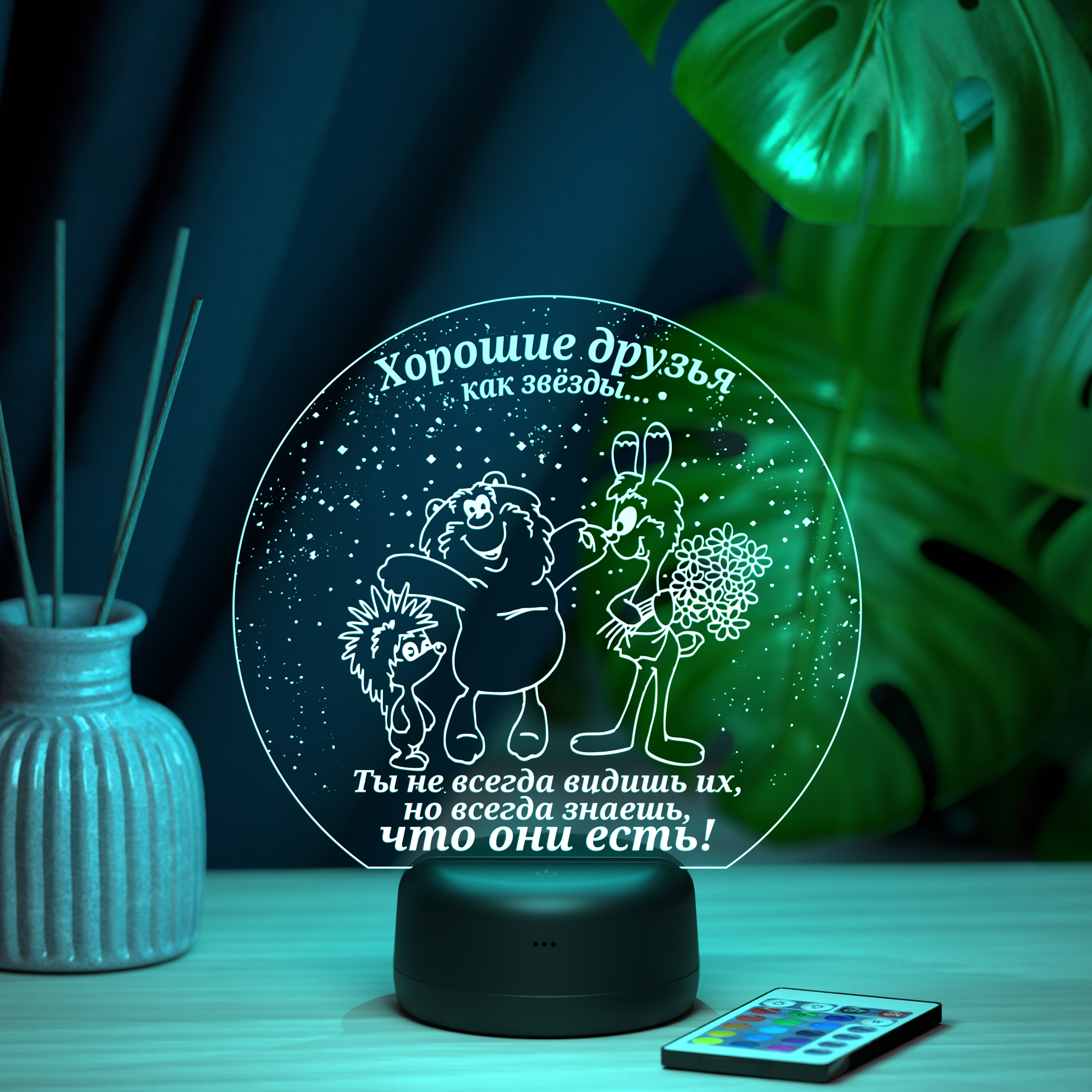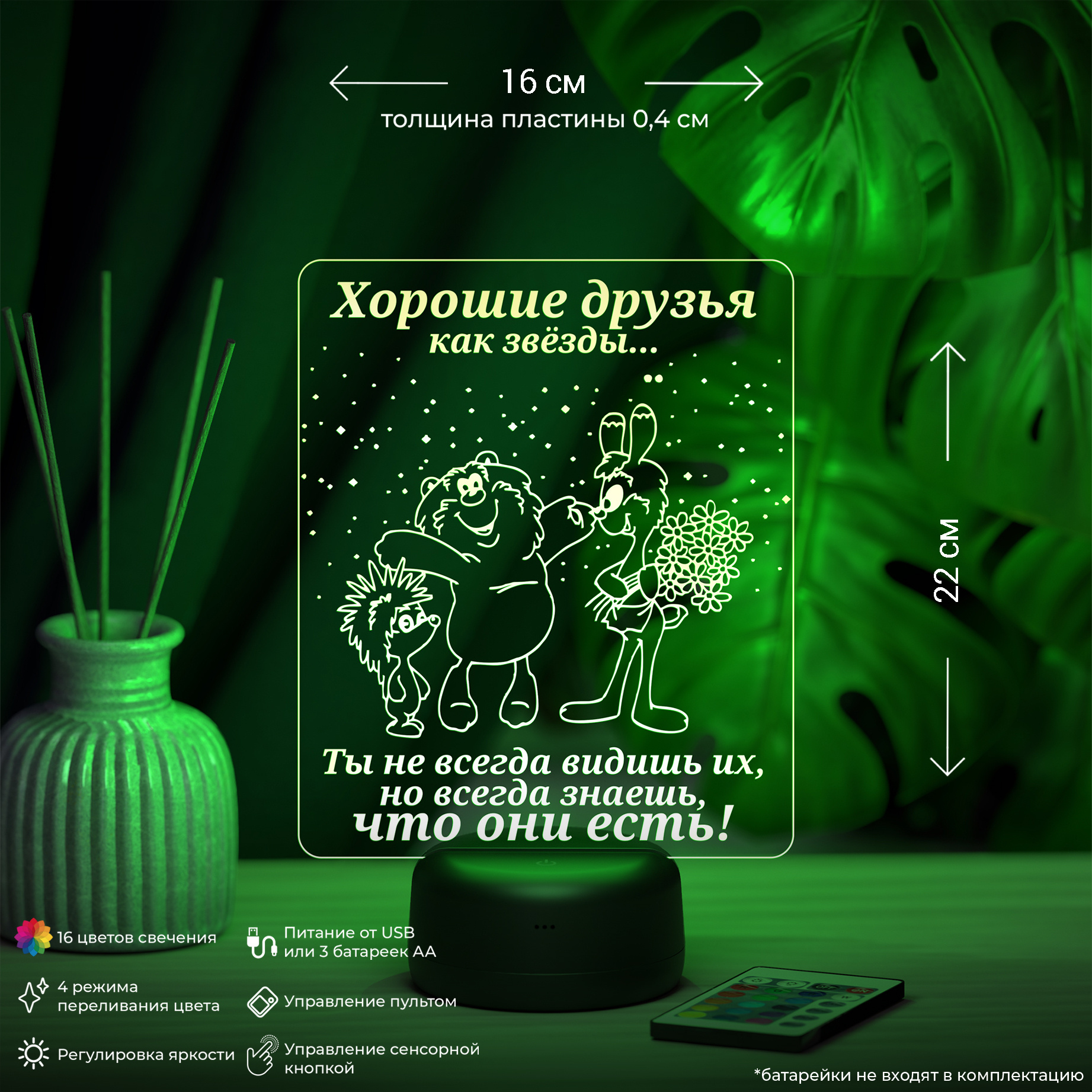 Цвета свечения: ночники имеют 16 разных режимов подсветки, регулировку яркости и 4 режима переливания цвета. Управление режимами подсветки осуществляется с помощью пульта дистанционного управления, а также прикосновением к сенсорной панели на основании светильника.