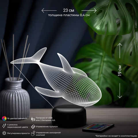 Питание: 3Д-Светильник работает от 3-х батареек АА или от USB провода. Возможна доукомплектация адаптером питания от сети 220V