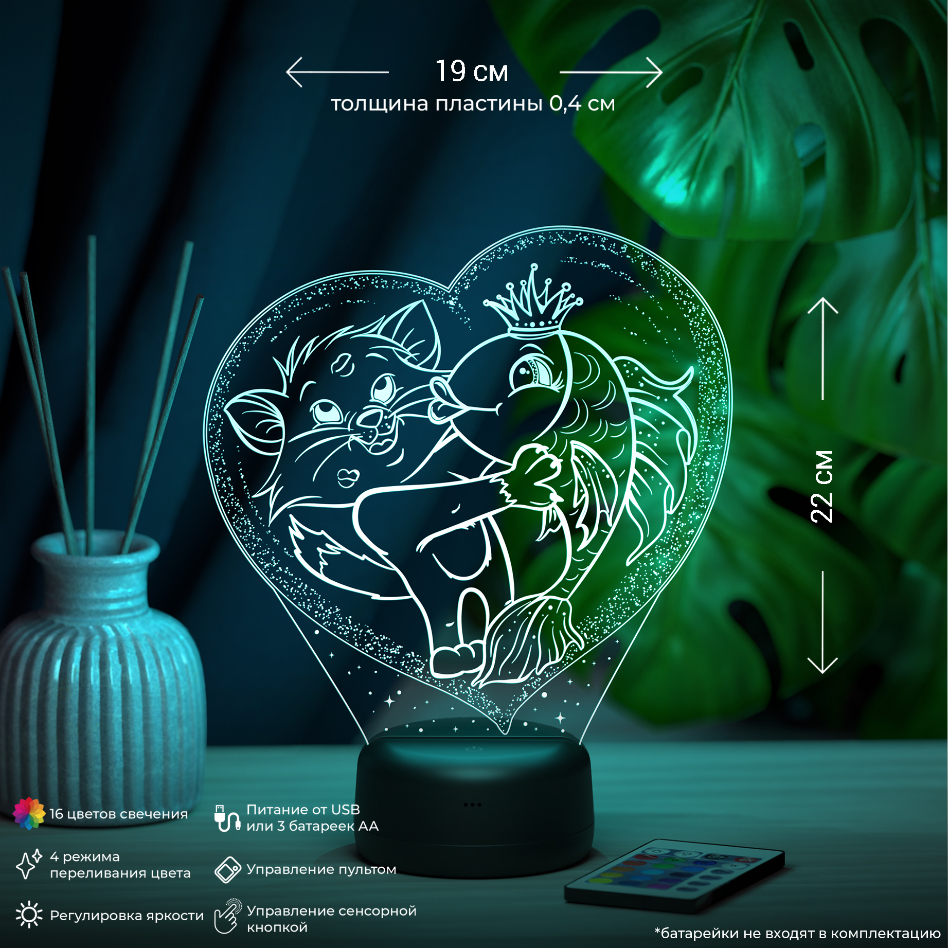Цвета свечения: ночники имеют 16 разных режимов подсветки, регулировку яркости и 4 режима переливания цвета. Управление режимами подсветки осуществляется с помощью пульта дистанционного управления, а также прикосновением к сенсорной панели на основании светильника.