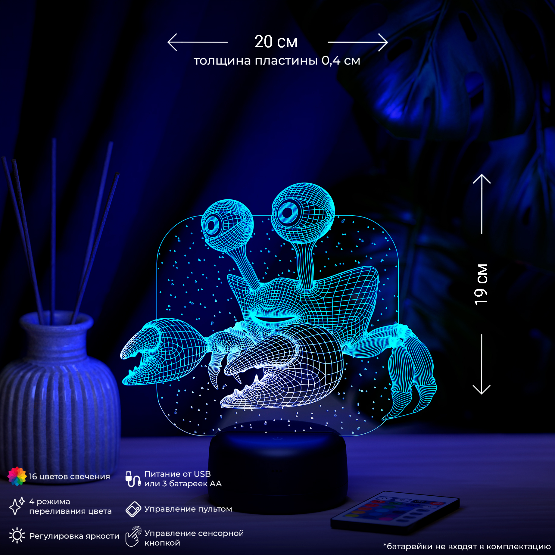 Питание: 3Д-Светильник работает от 3-х батареек АА или от USB провода. Возможна доукомплектация адаптером питания от сети 220V