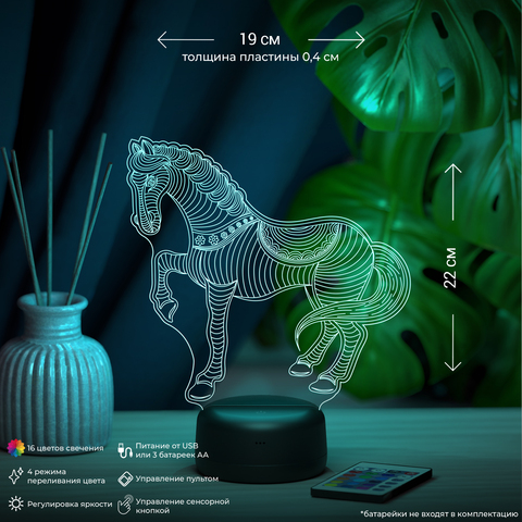 Питание: 3Д-Светильник работает от 3-х батареек АА или от USB провода. Возможна доукомплектация адаптером питания от сети 220V