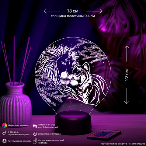 Питание: 3Д-Светильник работает от 3-х батареек АА или от USB провода. Возможна доукомплектация адаптером питания от сети 220V