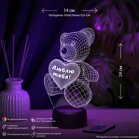 Ночник "Мишка - Люблю тебя" (Ваш текст)