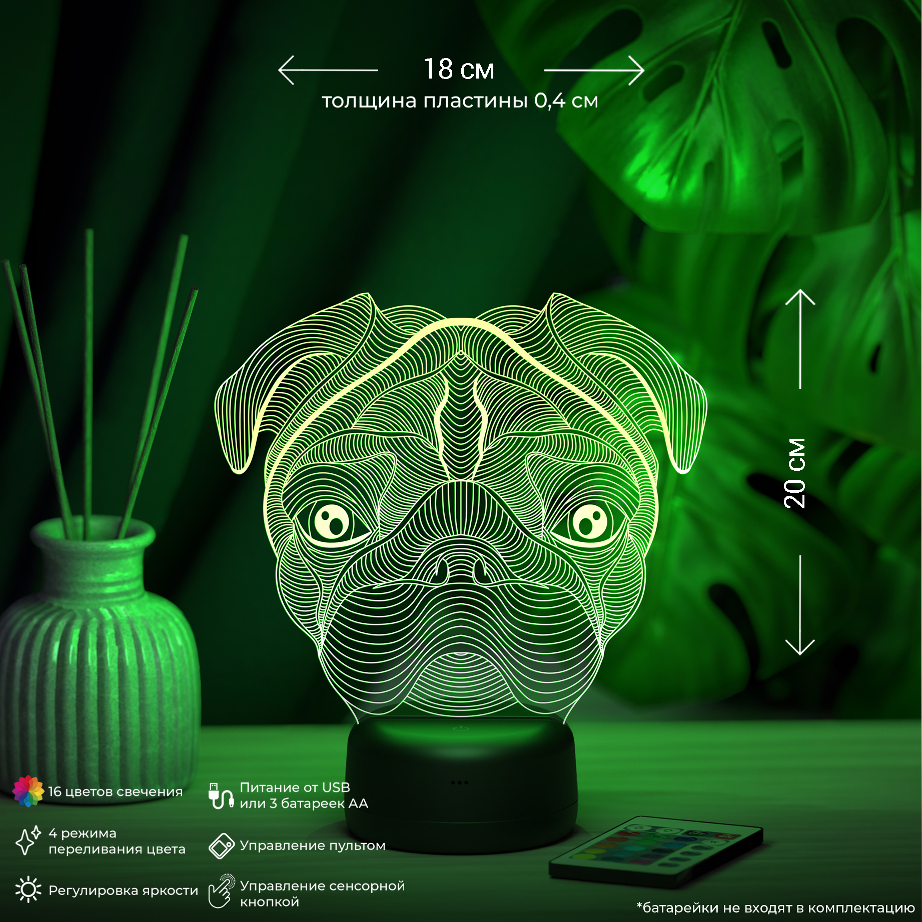 Питание: 3Д-Светильник работает от 3-х батареек АА или от USB провода. Возможна доукомплектация адаптером питания от сети 220V