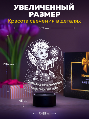 Цвета свечения: ночники имеют 16 разных режимов подсветки, регулировку яркости и 4 режима переливания цвета. Управление режимами подсветки осуществляется с помощью пульта дистанционного управления, а также прикосновением к сенсорной панели на основании светильника.