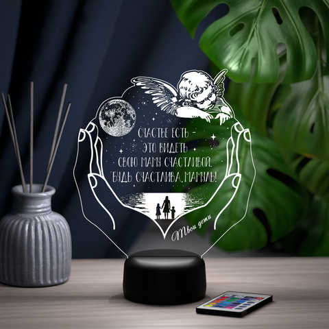 Сделайте заказ на этот светильник в чате! Напишите нам Вконтакте: vk.me/3dlamp или WhatsApp: +79175778946 или добавьте товар в корзину и укажите желаемый текст в специальном поле в корзине (также указать нужный текст можно в чате с нашим менеджером в ВК или WhatsApp). Перед изготовлением менеджер свяжется с вами по почте, в ВК или Whatsapp для согласования макета.