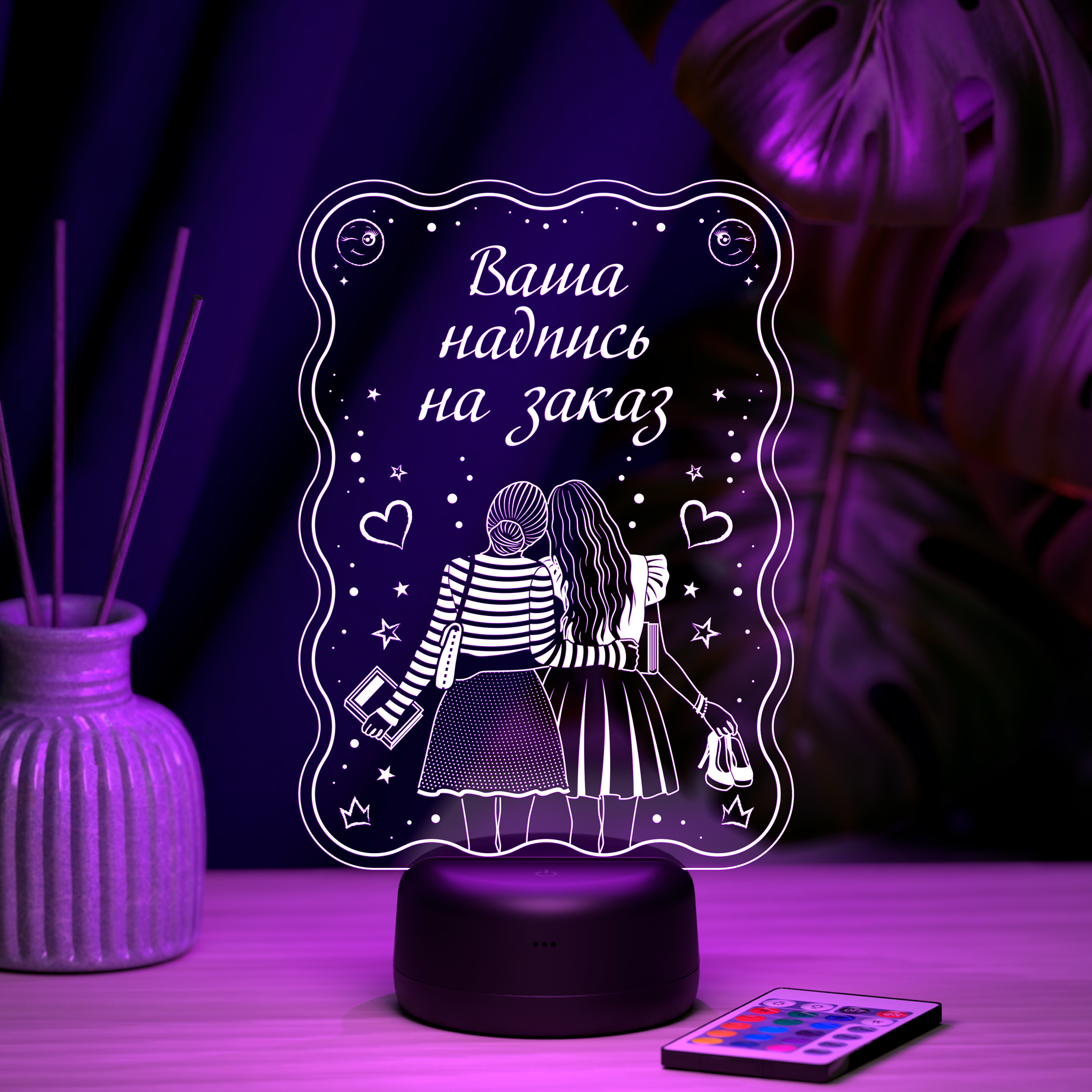 Сделайте заказ на этот светильник в чате! Напишите нам Вконтакте: vk.me/3dlamp или WhatsApp: +79175778946 или добавьте товар в корзину и укажите желаемый текст в специальном поле в корзине (также указать нужный текст можно в чате с нашим менеджером в ВК или WhatsApp). Перед изготовлением менеджер свяжется с вами по почте, в ВК или Whatsapp для согласования макета.