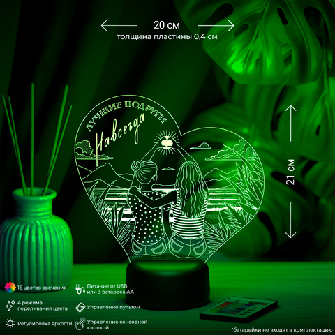 Питание: 3Д-Светильник работает от 3-х батареек АА или от USB провода. Возможна доукомплектация адаптером питания от сети 220V