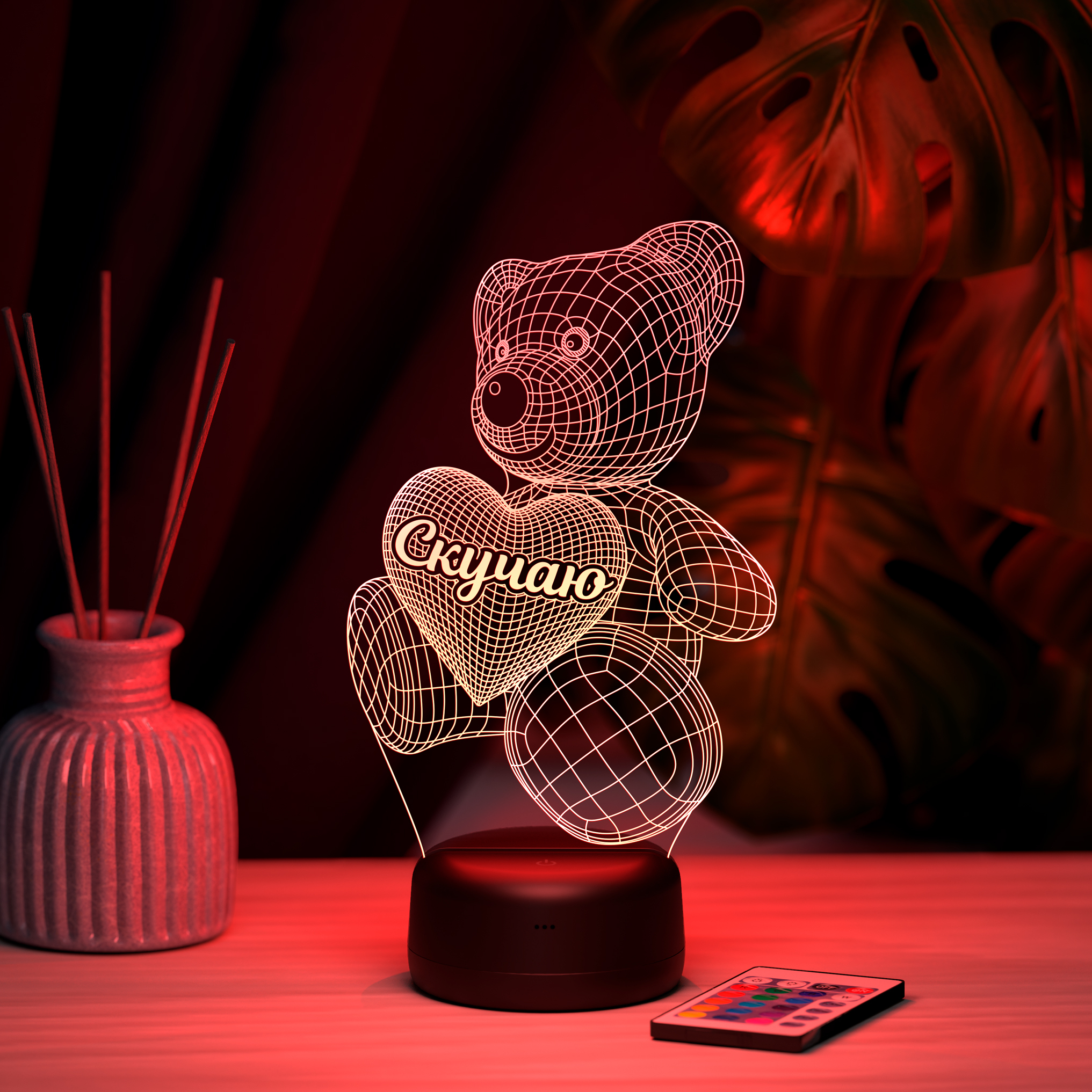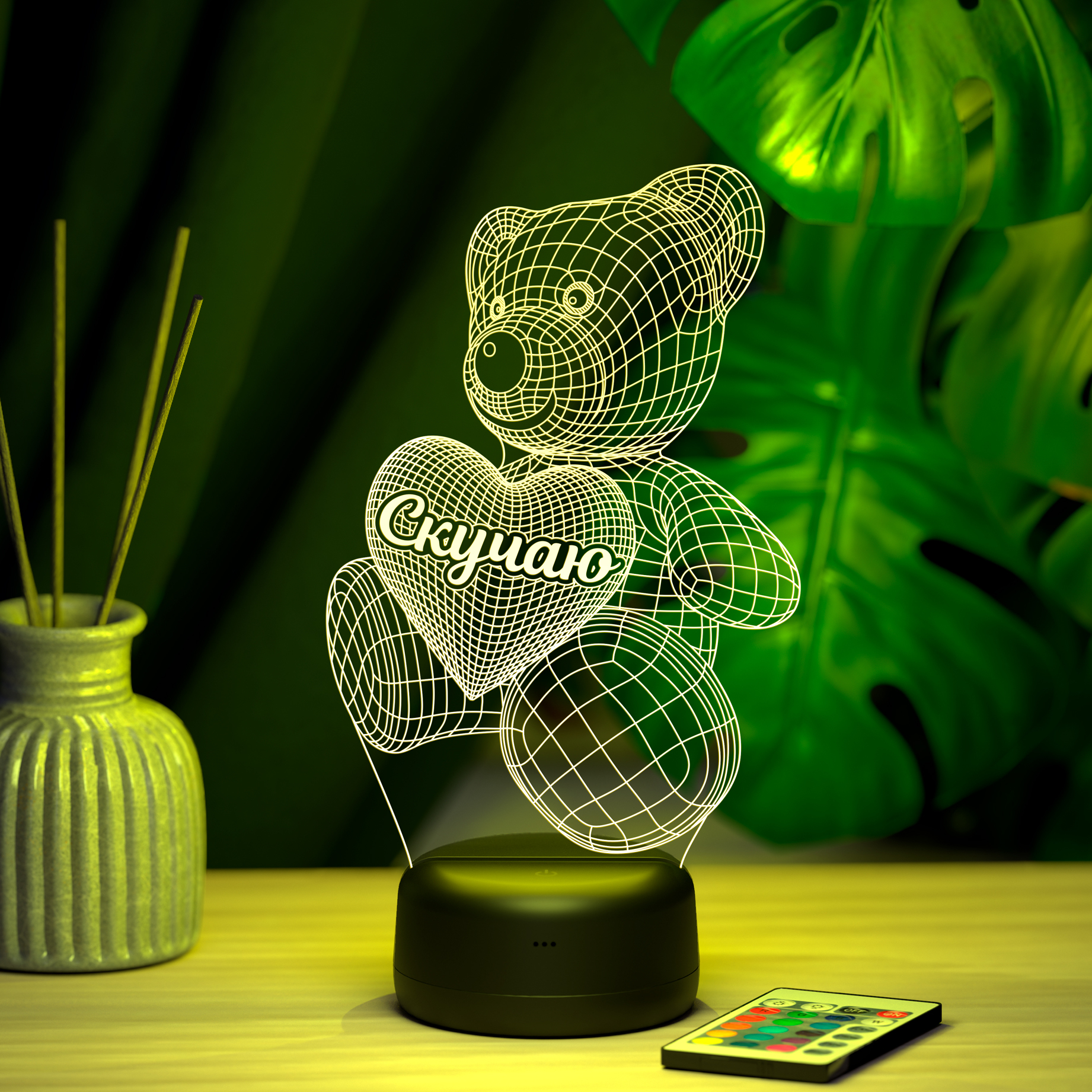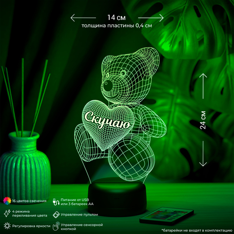 Питание: 3Д-Светильник работает от 3-х батареек АА или от USB провода. Возможна доукомплектация адаптером питания от сети 220V