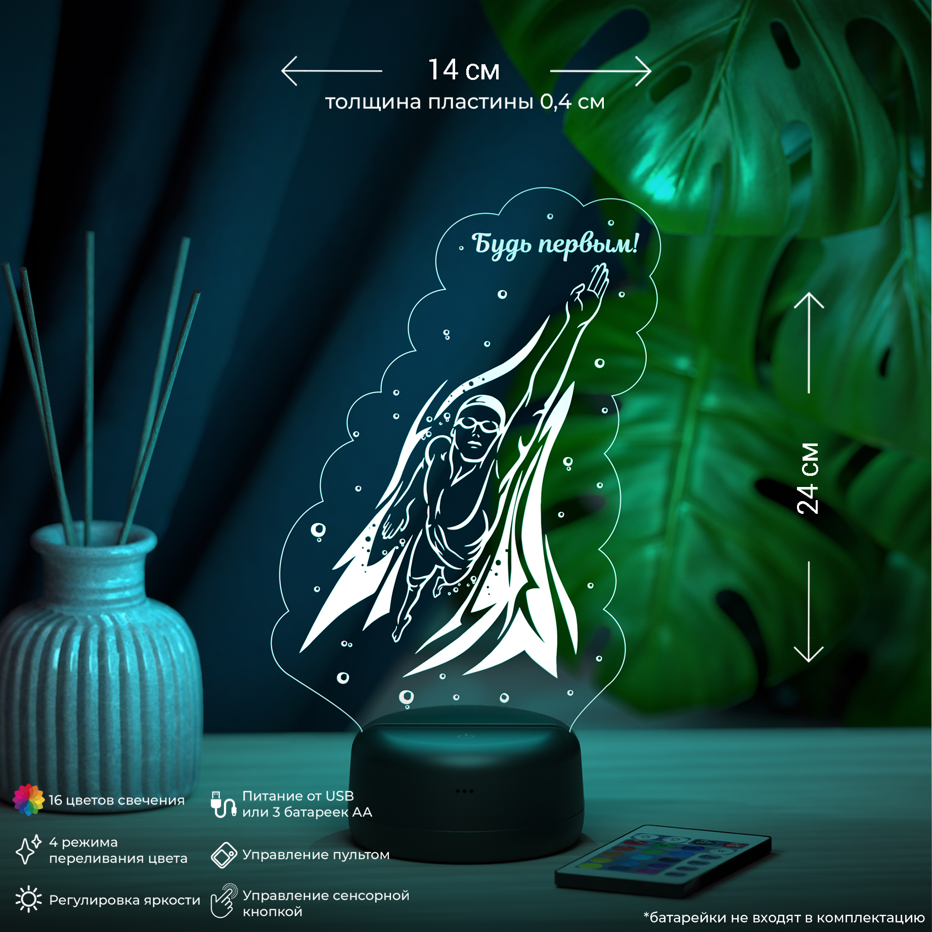 Ночник "Пловец - будь первым" (Ваш текст)