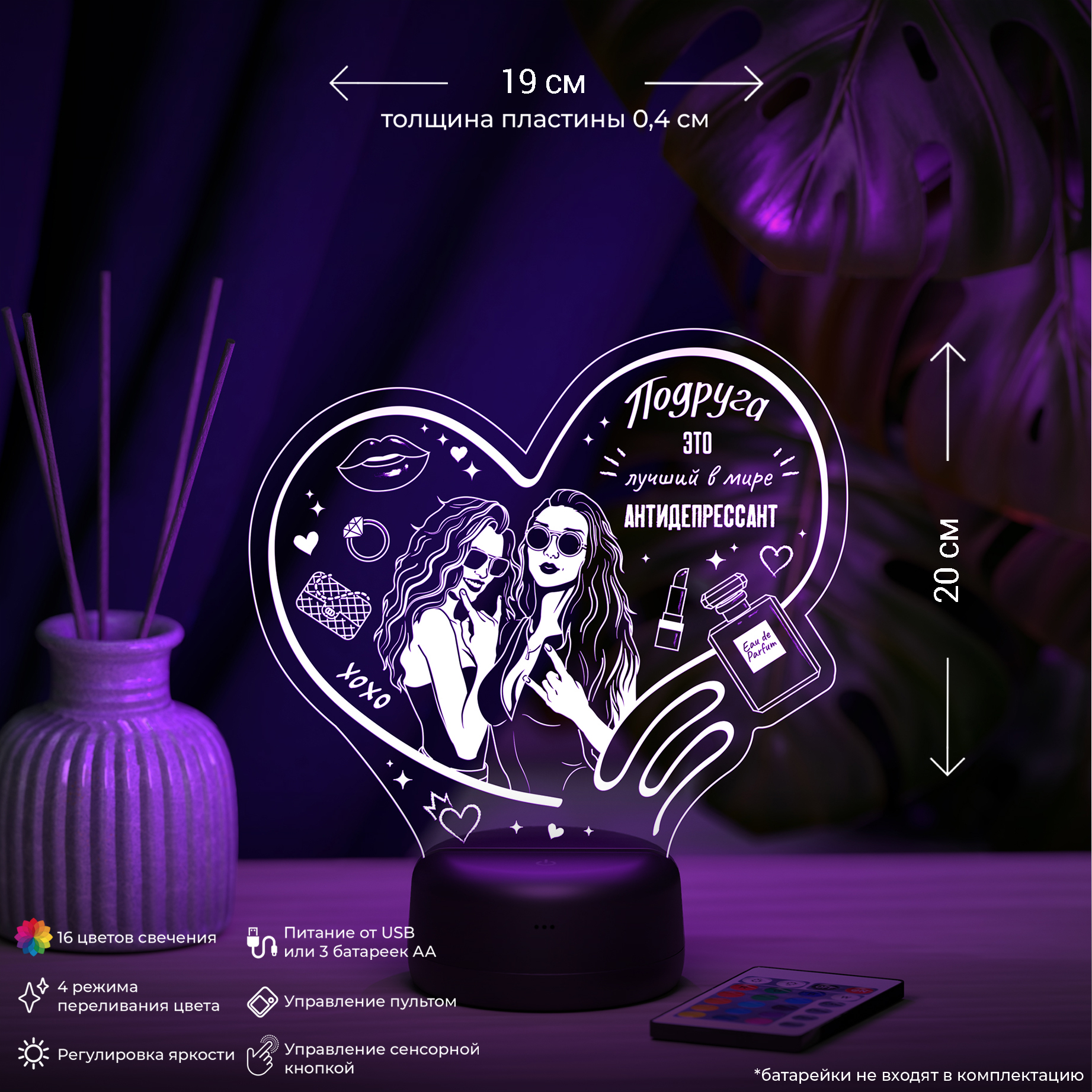 - световая подставка (база/основание): 1 шт;