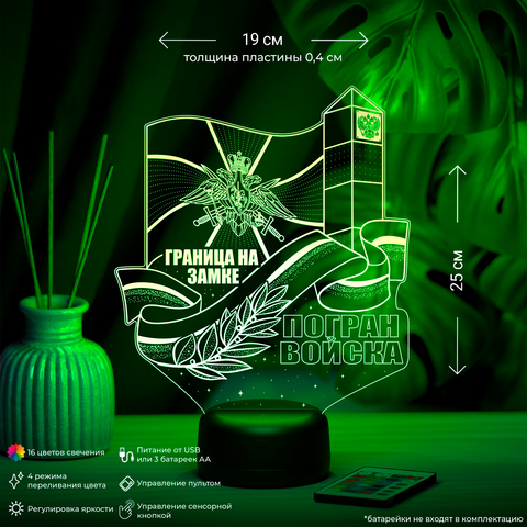 Питание: 3Д-Светильник работает от 3-х батареек АА или от USB провода. Возможна доукомплектация адаптером питания от сети 220V