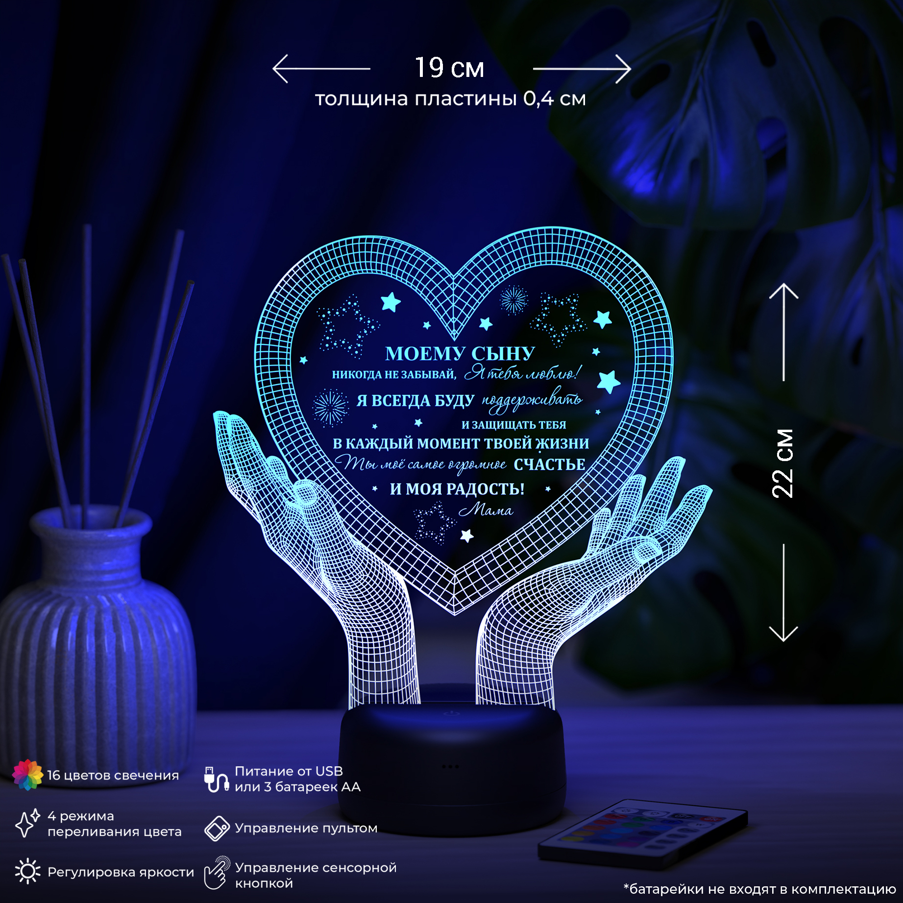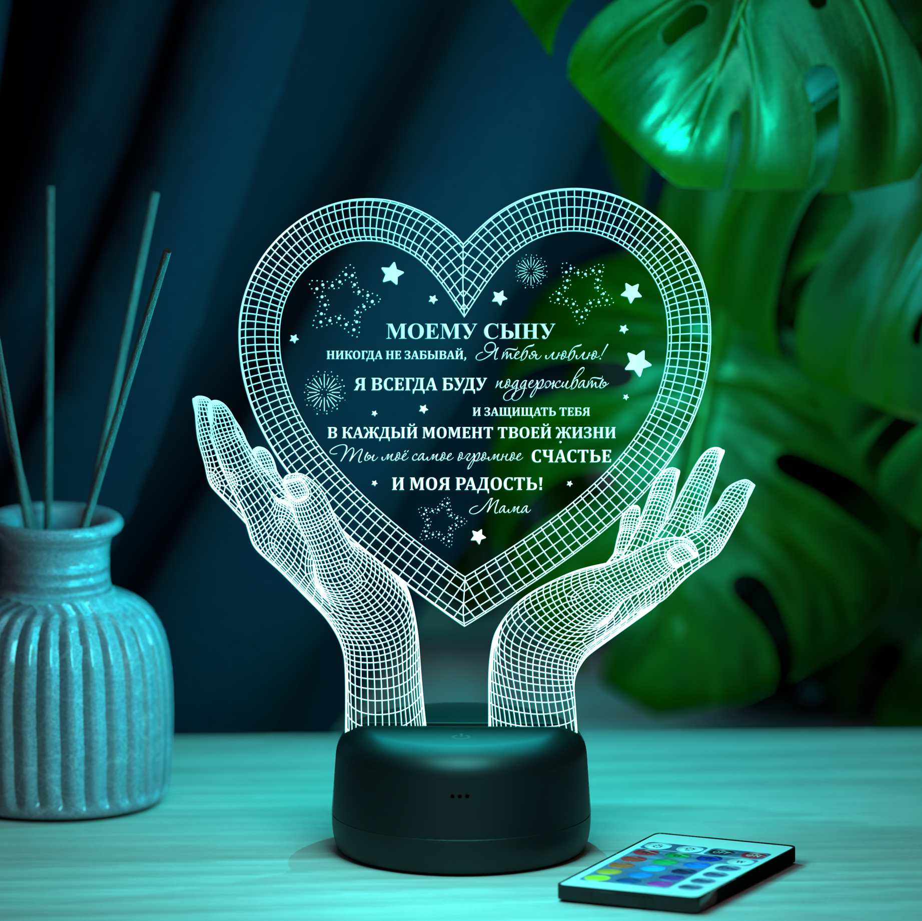 Светильник "Руки с сердцем 3D - в подарок сыну" (Ваш текст)
