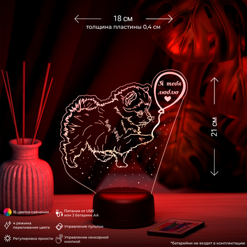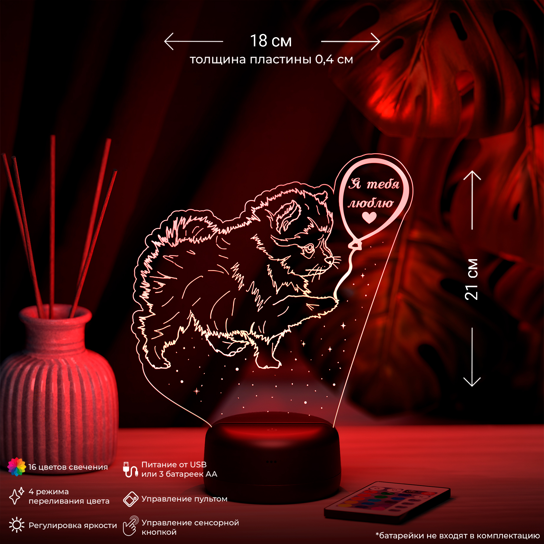 Питание: 3Д-Светильник работает от 3-х батареек АА или от USB провода. Возможна доукомплектация адаптером питания от сети 220V