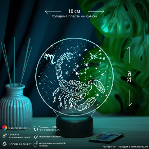 Питание: 3Д-Светильник работает от 3-х батареек АА или от USB провода. Возможна доукомплектация адаптером питания от сети 220V