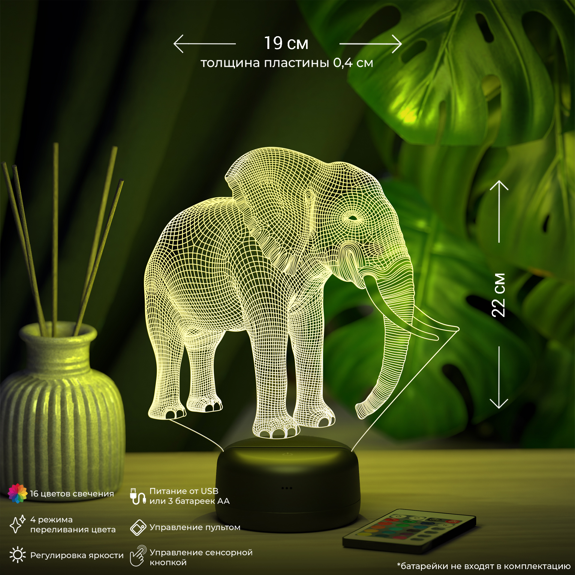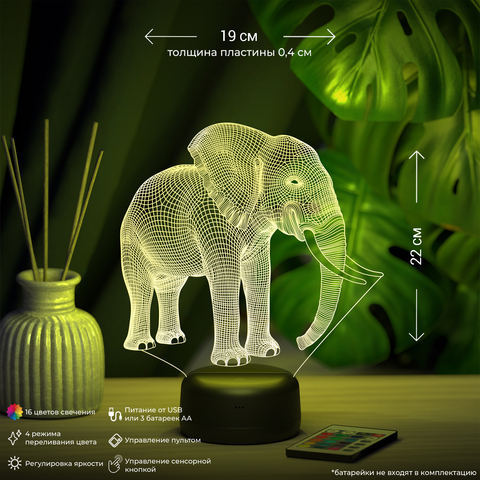 Питание: 3Д-Светильник работает от 3-х батареек АА или от USB провода. Возможна доукомплектация адаптером питания от сети 220V