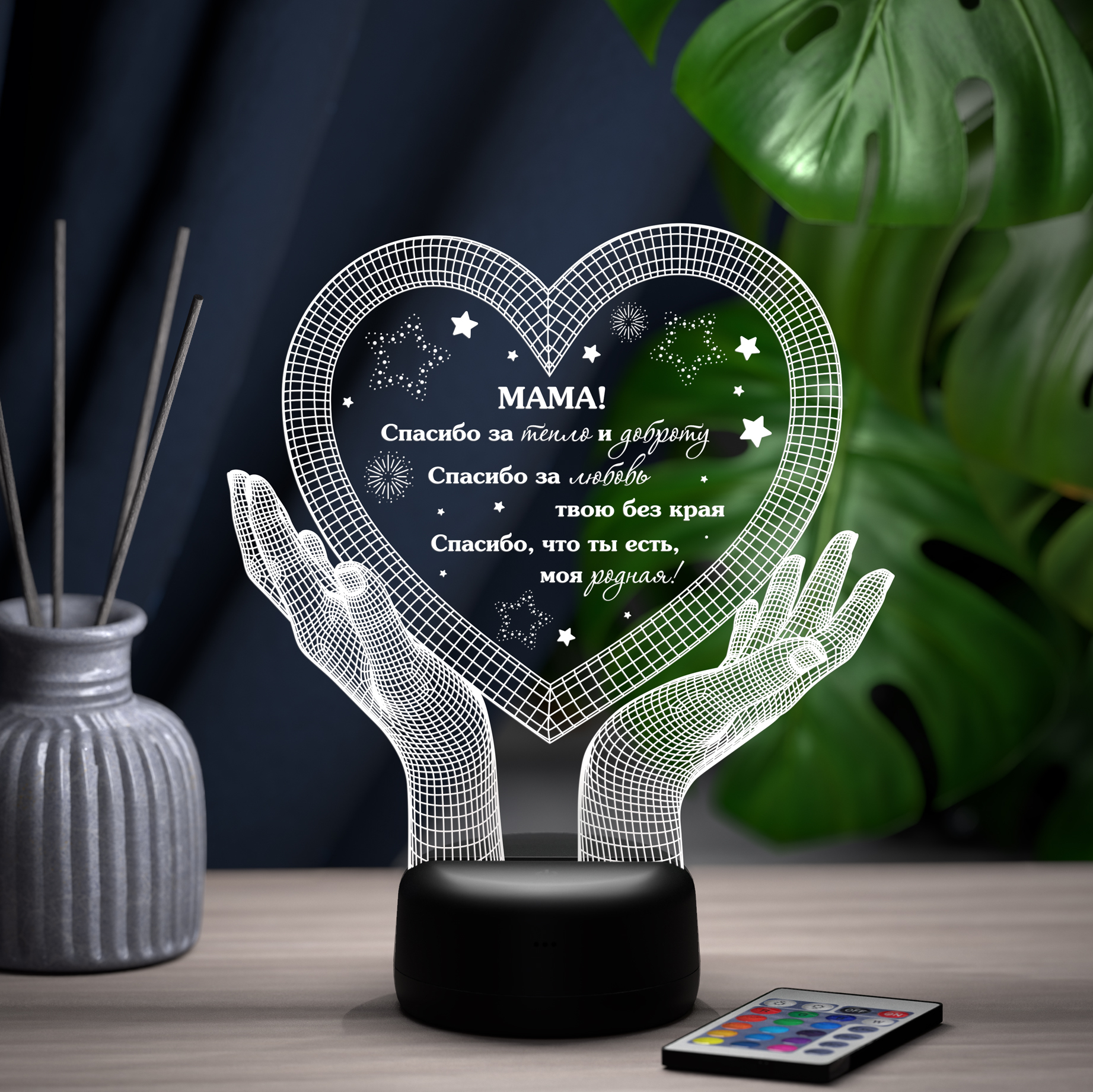 Светильник "Руки с сердцем 3D - в подарок маме" (Ваш текст)