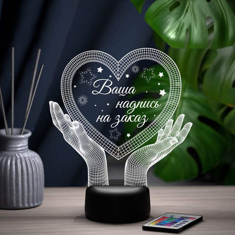 Светильник "Руки с сердцем 3D - в подарок тёте" (Ваш текст)