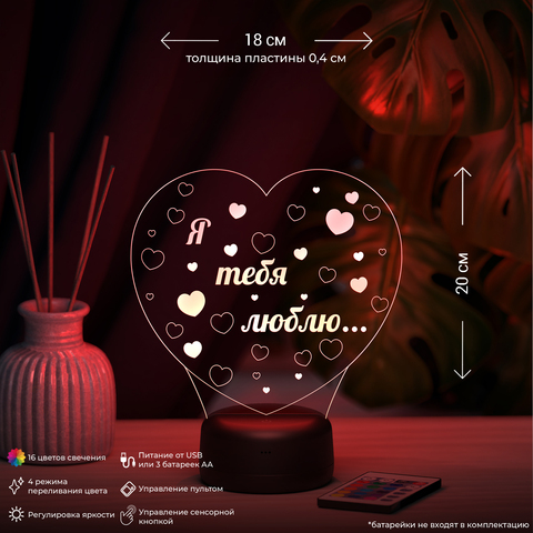 Ночник "Сердце - Я тебя люблю..." (Ваш текст)