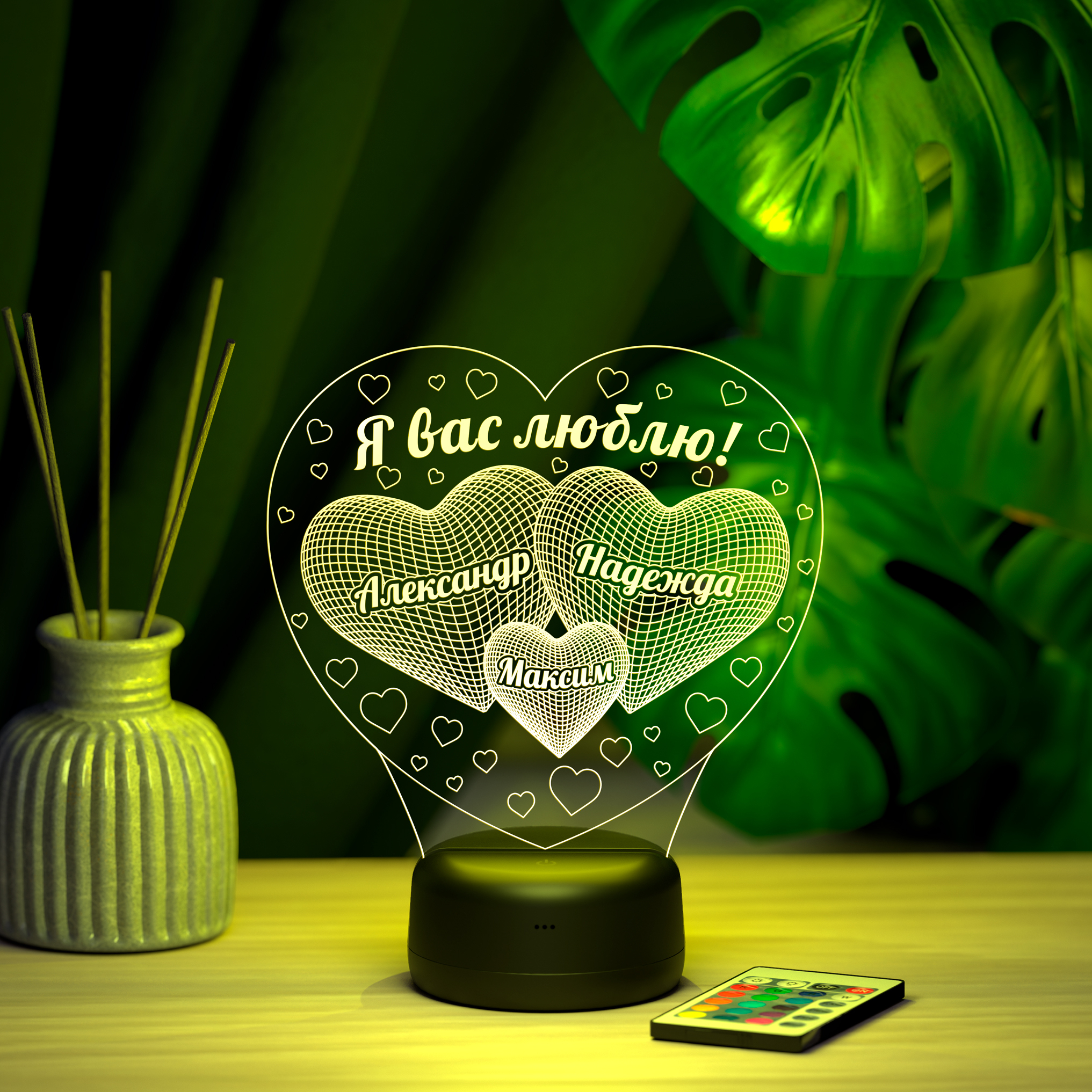 3Д-светильник "Сердечки - Я вас люблю" (Ваш текст)