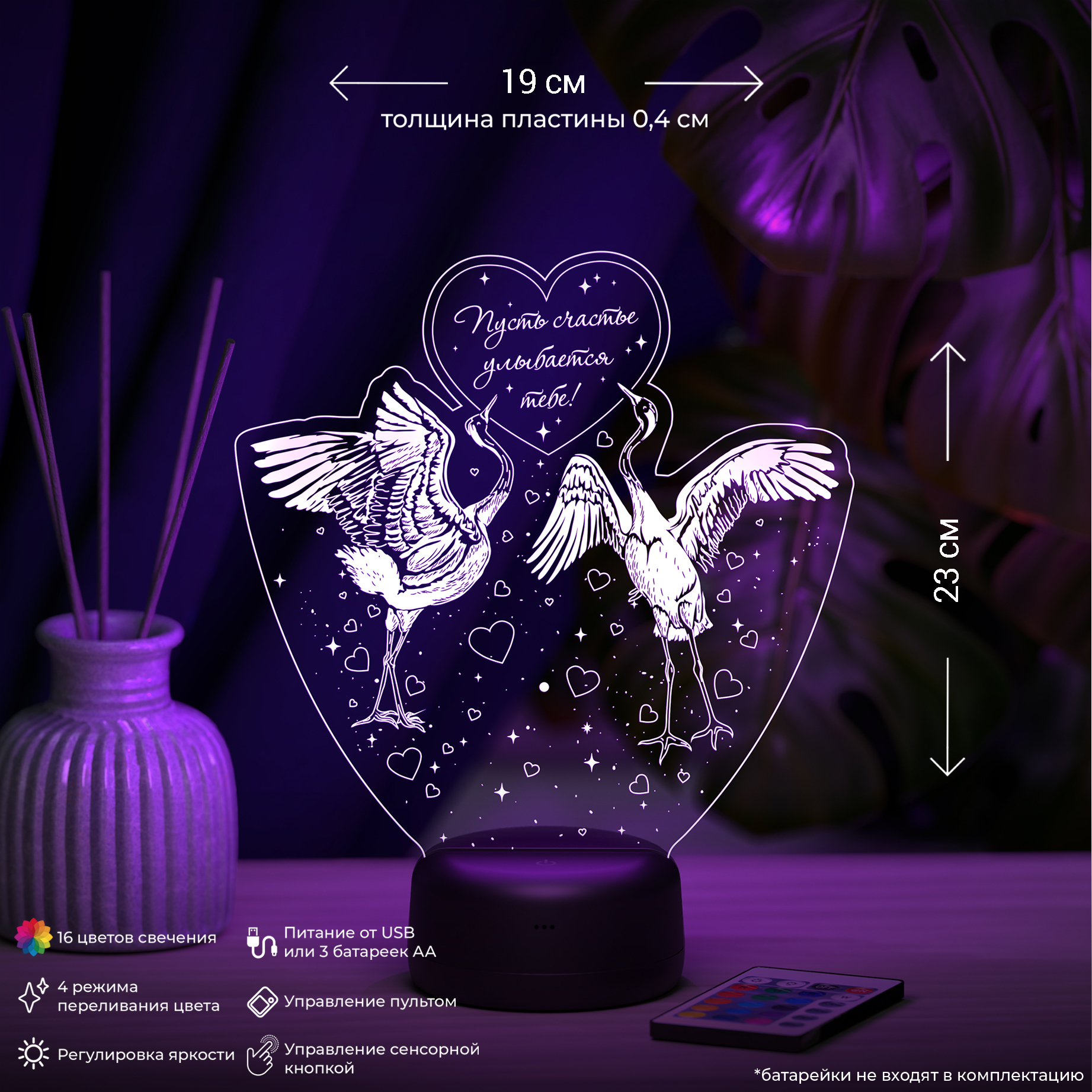 Цвета свечения: ночники имеют 16 разных режимов подсветки, регулировку яркости и 4 режима переливания цвета. Управление режимами подсветки осуществляется с помощью пульта дистанционного управления, а также прикосновением к сенсорной панели на основании светильника.
